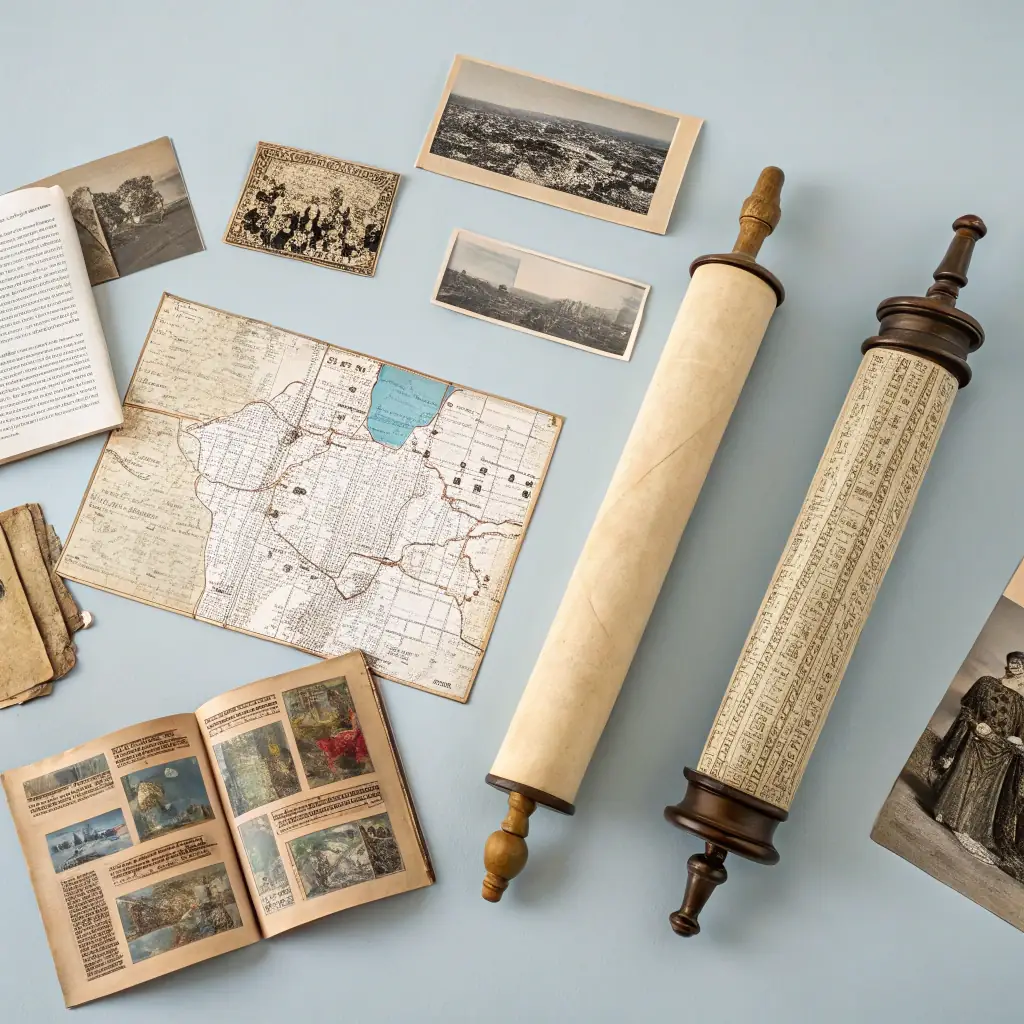 A researcher examining historical photographs and documents in an archive, highlighting the importance of research in understanding photographic heritage.